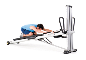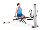 The Total Gym Jump Trainer is a jump exercise machine that builds explosive power and develops lower body muscle mass with two primary movements, the squat and the squat jump. It is designed to facilitate plyometric jumping exercises leveraging both linear bodyweight resistance and variable band resistance. The Total Gym Jump Trainer produces both concentric and eccentric loading of the muscles – allowing users to accelerate and decelerate quickly during a squat jump in a safe, controlled manner.
